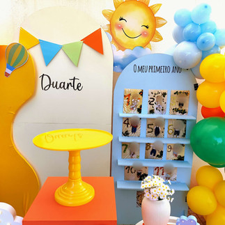 Primeira volta ao Sol do Duarte30 de ago. de 20251 min de leituraO Duarte comemorou o seu primeiro aninho num cenário cheio de cores alegres!! Este cenário foi realizado com as cores e convite feito pela mamã e ficou uma delícia!!